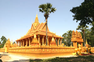 Bôtum Vong Sa Som Rong Pagoda, locally also known as Som Rong Pagoda, is located at 367 Ton Duc Thang, Area 2, Ward 5, Soc Trang City. The temple is decorated in Khmer style, combining with modern architectural lines which highlighting the temple. The presence of the temple with the golden tones under the blue sky look splendid and maestro.